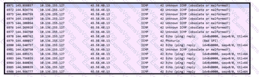 Refer to the exhibit. An engineer received a ticket to analyze unusual network traffic. What is occurring?