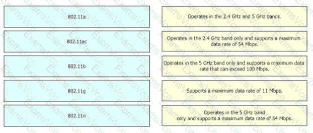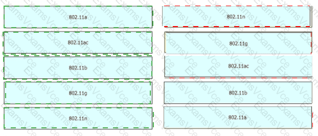 Drag and drop the 802.11 wireless standards from the left onto the matching statements on the right