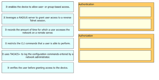Drag and drop the AAA features from the left onto the corresponding AAA security services on the right. Not all options are used.