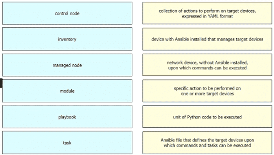 Drag and drop the Ansible terms from the left onto the right.