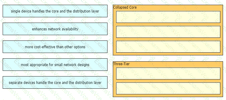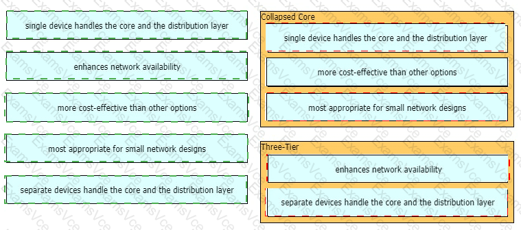 Drag and drop the characteristics of network architectures from the left onto the type of architecture on the right.