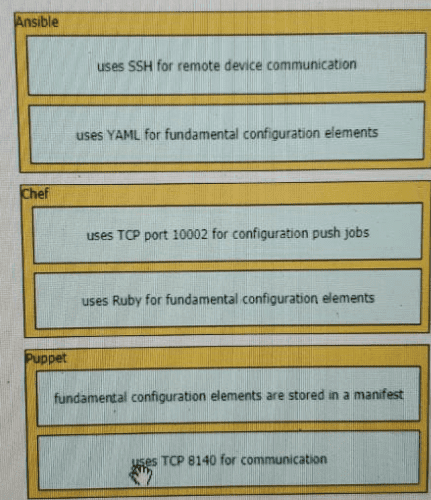 Drag and drop the descriptions from the left onto the configuration-management technologies on the right.
