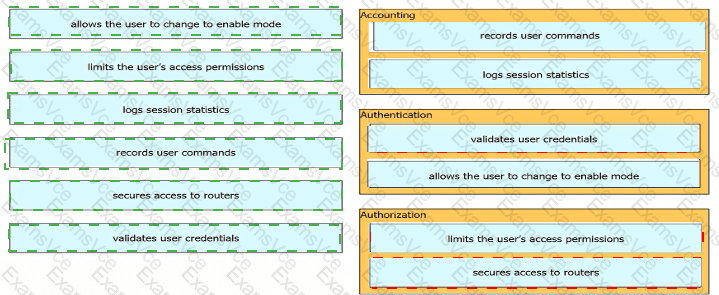 Drag and drop the descriptions of AAA services from the left onto the corresponding services on the right.