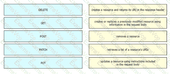 Drag and drop the HTTP methods used with REST-Based APIs from the left onto the descriptions on the right.