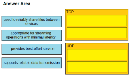 Drag and drop the TCP and UDP characteristics from the lett onto the corresponding protocols on the right.