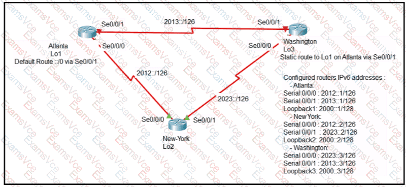 An engineer is configuring the NEW York router to reach the Lo1 interface of the Atlanta router using interface Se0/0/0 as the primary path. Which two commands must be configured on the New York router so that it can reach the Lo1 interface of the Atlanta router via Washington when the link between New York and Atlanta goes down? (Choose two)