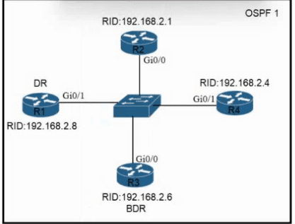 Refer to the exhibit. All routers In the network are configured. R2 must be the DR. After the engineer connected the devices, R1 was elected as the DR. Which command sequence must be configured on R2 to be elected as the DR in the network?