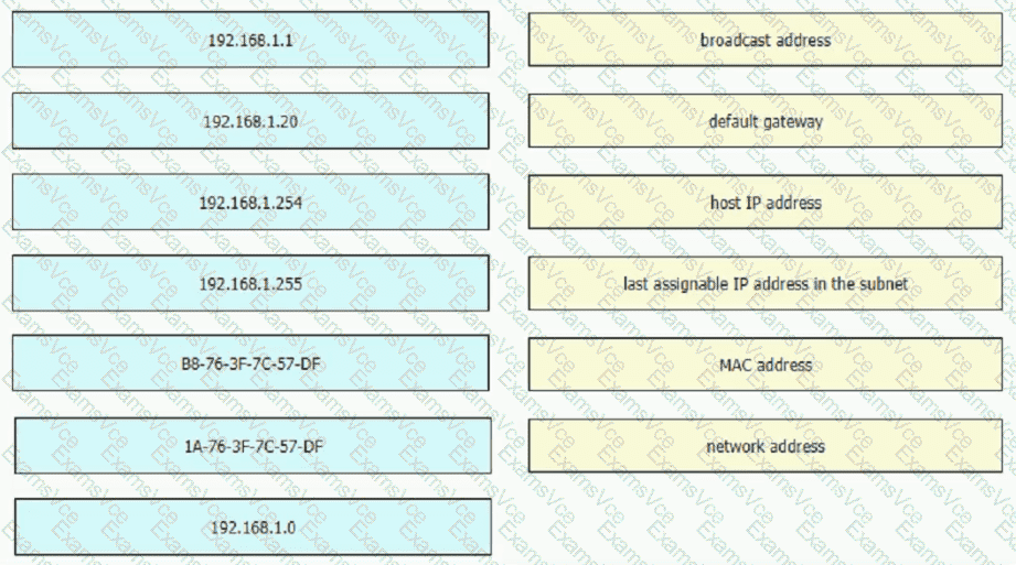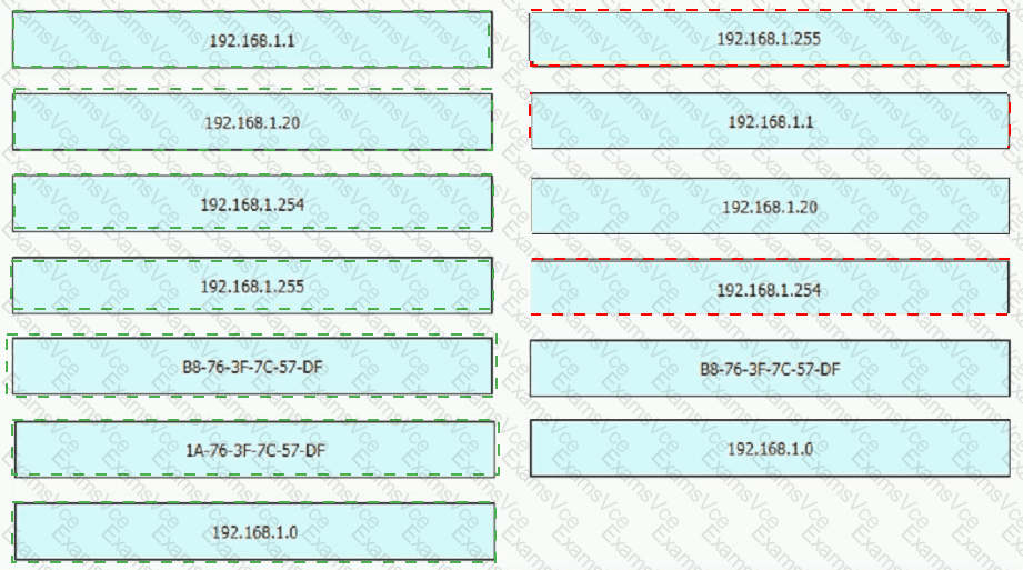 An engineer is required to verify that the network parameters are valid for the users wireless LAN connectivity on a /24 subnet. Drag and drop the values from the left onto the network parameters on the right. Not all values are used.