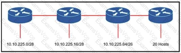 Refer to the exhibit. An engineer must add a subnet for a new office that will add 20 users to the network. Which IPv4 network and subnet mask combination does the engineer assign to minimize wasting addresses?