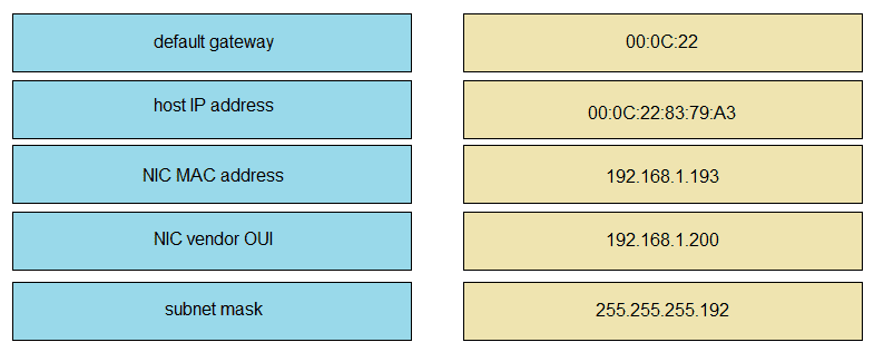 Drag and drop the networking parameters from the left onto the correct values on the right.