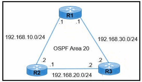 R1 learns all routes via OSPF Which command configures a backup static route on R1 to reach the 192 168.20.0/24 network via R3?