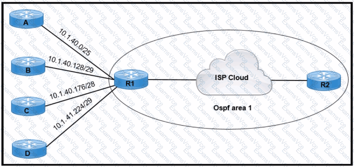 Router R1 receives static routing updates from routers A. B, C, and D. The network engineer wants R1 to advertise static routes in OSPF area 1. Which nary address must be advertised in OSPF?