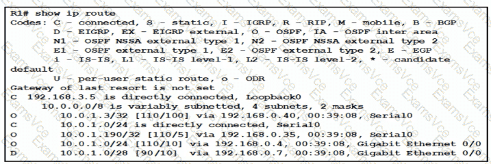 Traffic sourced from the loopback0 Interface is trying to connect via ssh to the host at 10.0.1.15. What Is the next hop to the destination address?