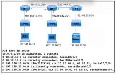 Refer to the exhibit. What is the next-hop IP address for R2 so that PC2 reaches the application server via EIGRP?