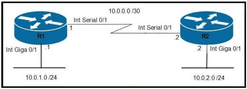 Which command configures OSPF on the point-to-point link between routers R1 and R2?
