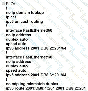 Which IPv6 configuration is required for R17 to successfully ping the WAN interface on R18?