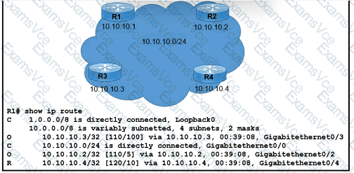 Which next-hop IP address has the least desirable metric when sourced from R1?