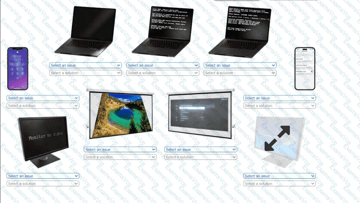 Click on each device to review the issue. Then select the appropriate issue and solution