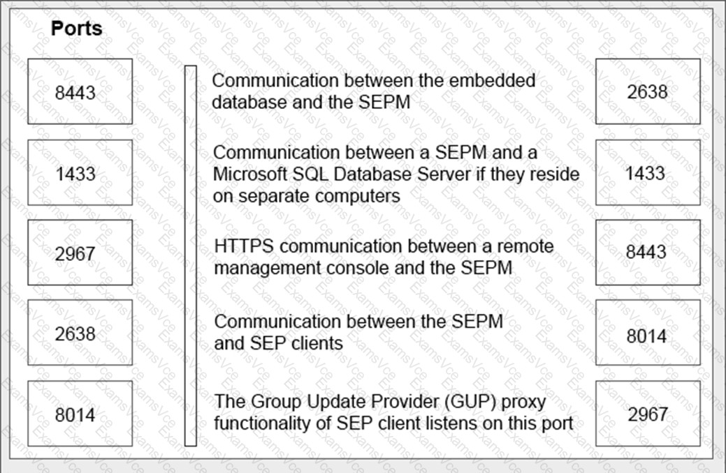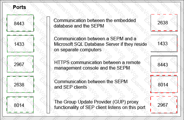 Match the following list of ports used by Symantec Endpoint Protection (SEP) to the defining characteristics by clicking and dragging the port on the left to the corresponding description on the right.