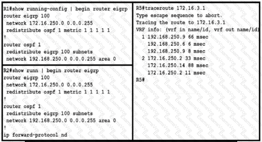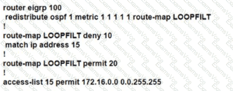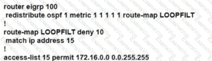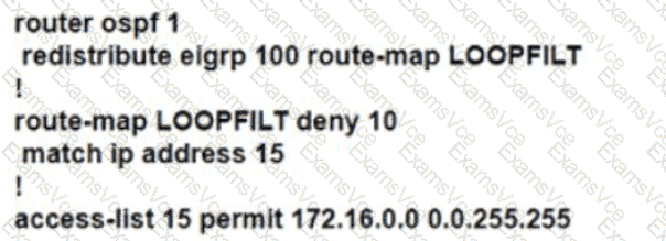 Refer to the exhibit. An engineer Is troubleshooting a routing loop on the network to reach the 172.16.3.0/16 from the OSPF domain. Which configuration on router R1 resolves the Issue?