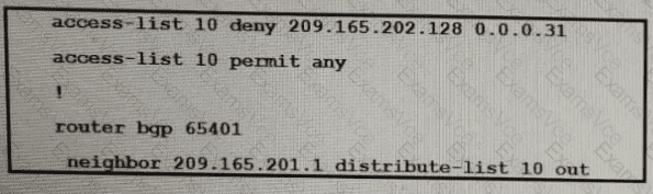 A company with autonomous system number AS65401 has obtained IP address block 209.165.200.224/27 fro, ARIN. The company needed more IP addresses and was assigned block209.165.202.128/27 from ISP2. An engineer is ISP1 reports they are receiving ISP2 routes from AS65401. Which configuration onR1 resolves the issue?