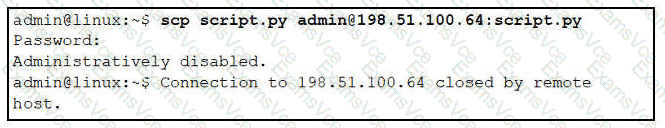A network administrator has developed a Python script on the local Linux machine and is trying to transfer it to the router. However, the transfer fails. Which action resolves this issue?