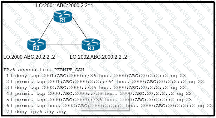 An IPv6 network was newly deployed in the environment and the help desk reports that R3 cannot SSH to the R2s Loopback interface. Which action resolves the issue?