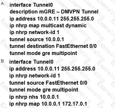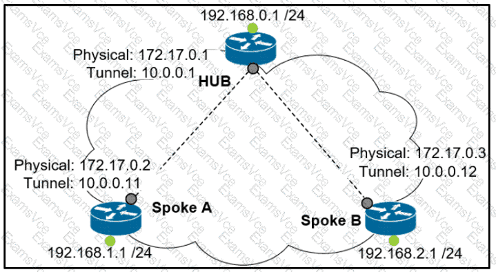 Which interface configuration must be configured on the spoke A router to enable a dynamic DMVPN tunnel with the spoke B router?