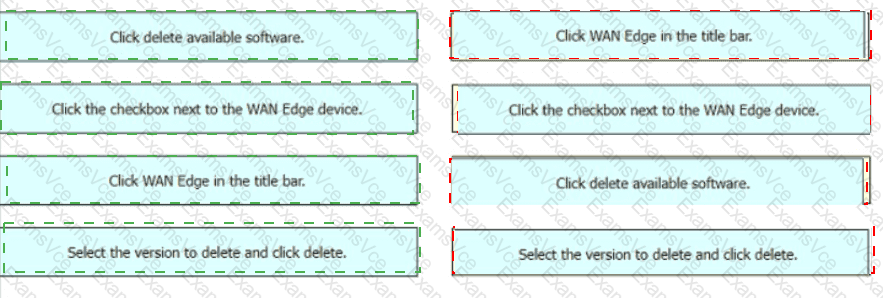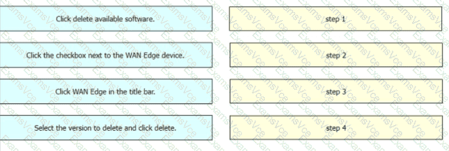 Drag and drop the steps from the left Into the order on the right to delete a software image for a WAN Edge router starting with Maintenance > Software Upgrade > Device list on vManage.