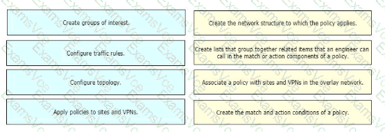 Drag and drop the vManage policy configuration procedures from the left onto the correct definitions on the right.