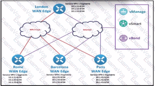 The SD-WAN network Is configured with a default full-mesh topology. The network engineer wants the Rome WAN Edge to use the MPLS TLOC as the preferred TLOC when ….. Telnet traffic as long as me MPLS Ink has these, characteristics: