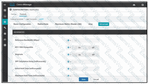 Refer to the exhibit. A network administrator is configuring OSPF advanced configuration parameters from a template using the vManager GUI for a branch WAN Edge router to calculate the cost of summary routes to an ASBR. Which action achieves this configuration?