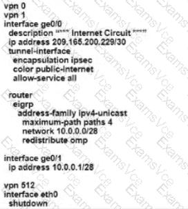 Refer to the exhibit The network team must configure El GRP peering at HQ with devices in the service VPN connected to WAN Edge CSRv. CSRv is currently configured with