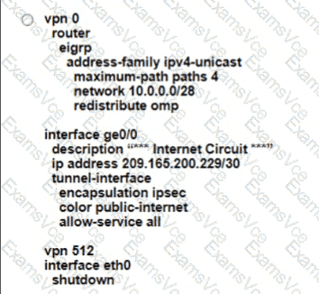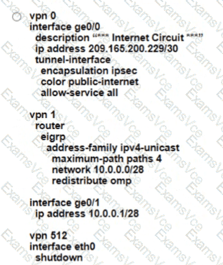 Refer to the exhibit The network team must configure ElGRP peering at HQ with devices in the service VPN connected to WAN Edge CSRv. CSRv is currently configured with