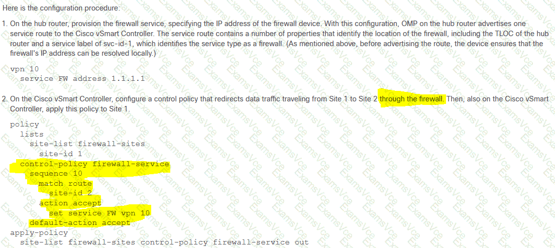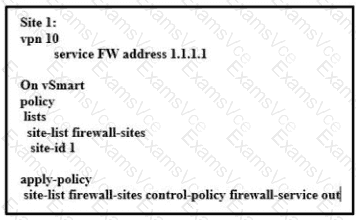 Refer to the exhibit, Which configuration routes Site 2 through the firewall in Site 1?