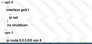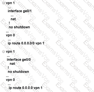 Refer to the exhibit Which configuration sets up direct Internet access for VPN 1?