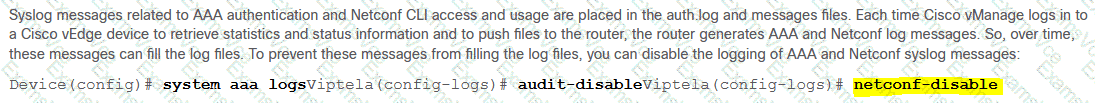 Refer to the exhibit. Which configuration stops Netconf CLI logging on WAN Edge devices during migration?