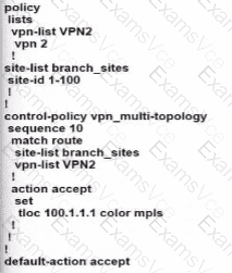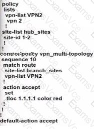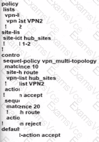 Which control policy assigned to Drenches in the out direction establishes a strict hub-and-spoke topology...