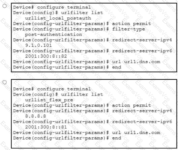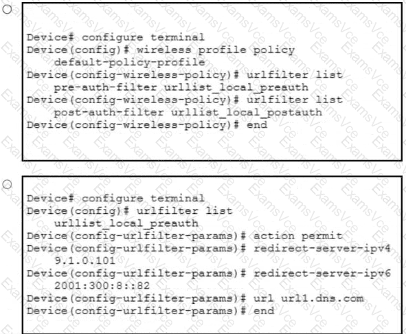 A network administrator of a school district must implement a DNS-based ACL to block students from accessing certain teacher URLs where test papers are hosted. The infrastructure contains a Cisco Catalyst 9800 WLC with 25 9136 APs. The administrator configured the URL Filter List called urllist_flex_pre, applied the URL Filter List to the default Flex Profile, and defined Preauth called urllist_local_preauth and Postauth called urllist_local_postaut URL Filter List. Which configuration must the administrator apply to implement the ACL on the default policy profile?