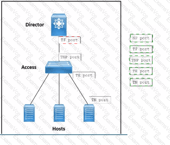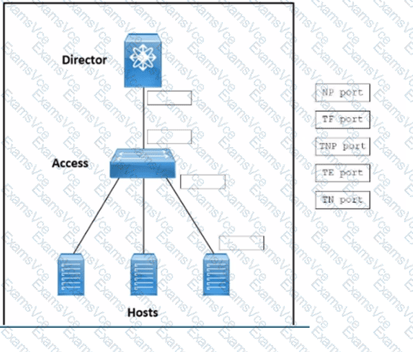 A customer is deploying a SAN based on Cisco MDS 9000 Series Switches. Each Inter-Switch Link must carry multiple VSANs at the same time. The access switch must share the same domain ID as the director switch to reduce the number of domain IDs needed in the fabric Drag and drop the operational port types from the right onto the boxes on the left to create a topology that meets these requirements. Not all port types are used. Port types are used more than once.