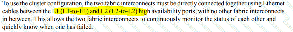 A network architect designs a high-availability architecture for the Cisco UCS Fabric interconnects that installed in a data center. The architecture must support clustering and redundancy. Which architecture meets these requirements?