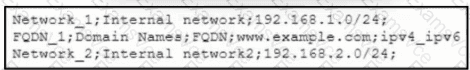 Refer to the exhibit. An engineer must import three network objects into the Cisco Secure Firewall Management Center by using a CSV file. Which header must be configured in the CSV file to accomplish the task?