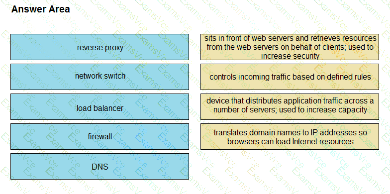 Drag and drop the elements from the left onto the correct descriptions on the right. Not all options are used.
