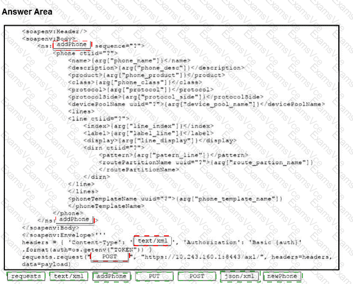 create a new phone in Cisco UCM using the AXL API. Some options may be used more than once. Not all options are used.