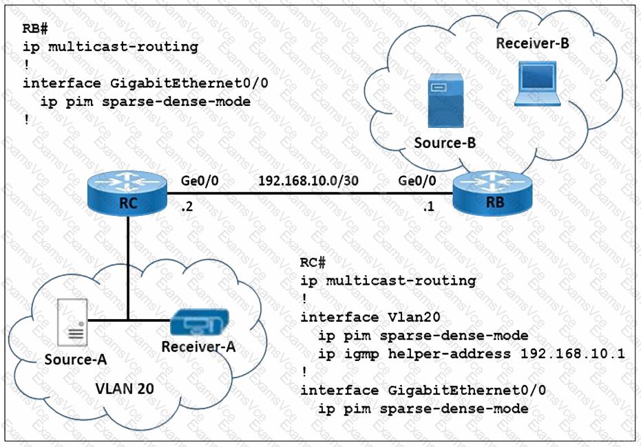 Refer to the exhibit. A network engineer is implementing multicast Source-A to send a multicast stream for Receiver-A, and multicast Source-B to send a multicast stream for Receiver-B. Router RC forwards the IGMP host a report and leaves messages to IP address 192.168.10.1. How must the multicast features be implemented to prevent RB from receiving multicast flooding from Source-A?