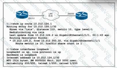 Refer to the exhibit. Router R13 is operating in Level 1 / Level 2 mode. A network engineer with an employee ID: 5209:82:636 must change the IS-IS cost of the route IP address 10.212.124.1 to 90. The metric update must be carried over in TLV 128. Which configuration must be implemented to complete the task?
