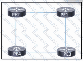 Refer to the exhibit. The four PE routers in the network are connected and running OSPF to share routes. MPLS is enabled on the four routers. The routers are connected and configured to use /30 networks. A network engineer must implement Layer 3 VPN support for traffic between customer sites.