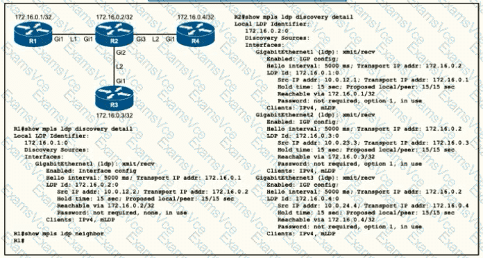 An engineer began to configure LDP between R1 and R2, but R1 and R2 cannot yet establish an LDP TCP connection. Which additional task must be completed to finish the implementation?