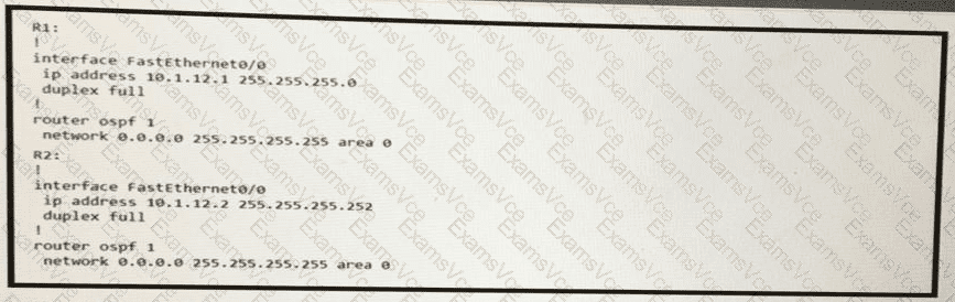R1 and R2 are directly connected with Fast Ethernet interfaces and have the above configuration applied OSPF adjacency is not formed. When the debug ip ospf hello command is issued on R1. these log messages are seen.