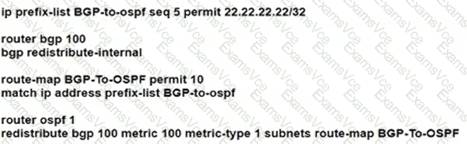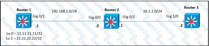 Router 1 and router 2 are running IBGP. and router 2 and router 3 are running OSPF Area 0. Router 1 is advertising loopback interlaces Lo0 and Lo2 and router 2 is redistributing BGP into OSPF Area 0. Which configuration must an administrator apply so that router 2 uses a route map to redistribute only the internal route from Lo 2?